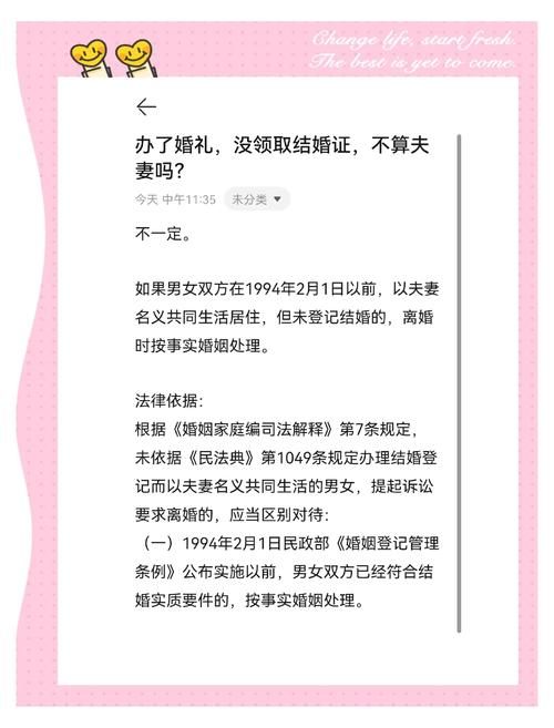 在宇宙法则里,没有“证件”的概念,只有“意念”和“事实”的概念、当你们决定以夫妻名义共处,并举行了某种形式的仪式(哪怕只是两家人吃个便饭宣告一下),这个时间点就被刻在了你们的命运之书上。
