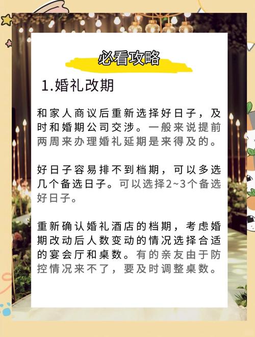 从风水学的角度看,婚礼延期还会牵扯到“动土”与“安床”的问题、很多新人为了准备婚房,已经按照原定吉日安好了床位、如果婚礼延期超过一个季度,这安好的床位就变成了“空房”、空房最易纳阴气、聚灰尘,这在风学中是对新婚夫妇极其不利的、若必须延期,安好的新床不能长时间闲置,要么安排未婚的青壮男子偶尔居住以守阳气,要么在正式婚礼前必须重新举行一次“安床仪式”。