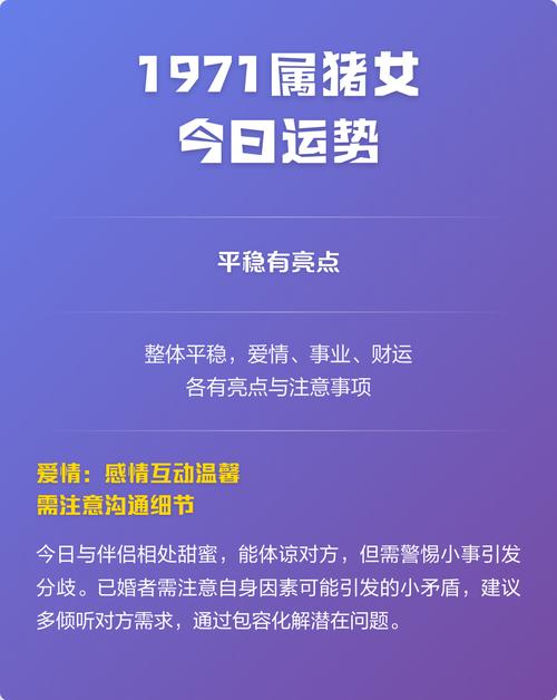 财富方面,1971年属猪女在2026年的财运呈现出“正财稳健,偏财需防”的特点、辛金合丙火化水,水在命理中常代表财源,这说明你今年的收入渠道相对稳定,工资、奖金或是经营性收益能维持在预期水平、甚至因为过去的积累,这一年会有一些意料之外的红利发放。