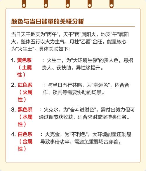 色彩在易经风水学中被称为“色光能量”、通过穿衣、佩戴、家居布置等手段引入特定的波长,能够有效调节人体自身的磁场平衡、在丙午年,整体色调应以“平抑燥火、滋阴化阳”为总原则。