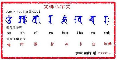 从现代声学的角度看,文殊八字真言的八个音节分布在人体不同的发音器官上、从喉轮到顶轮,从腹部到鼻腔,构成了一个完整的频率循环。