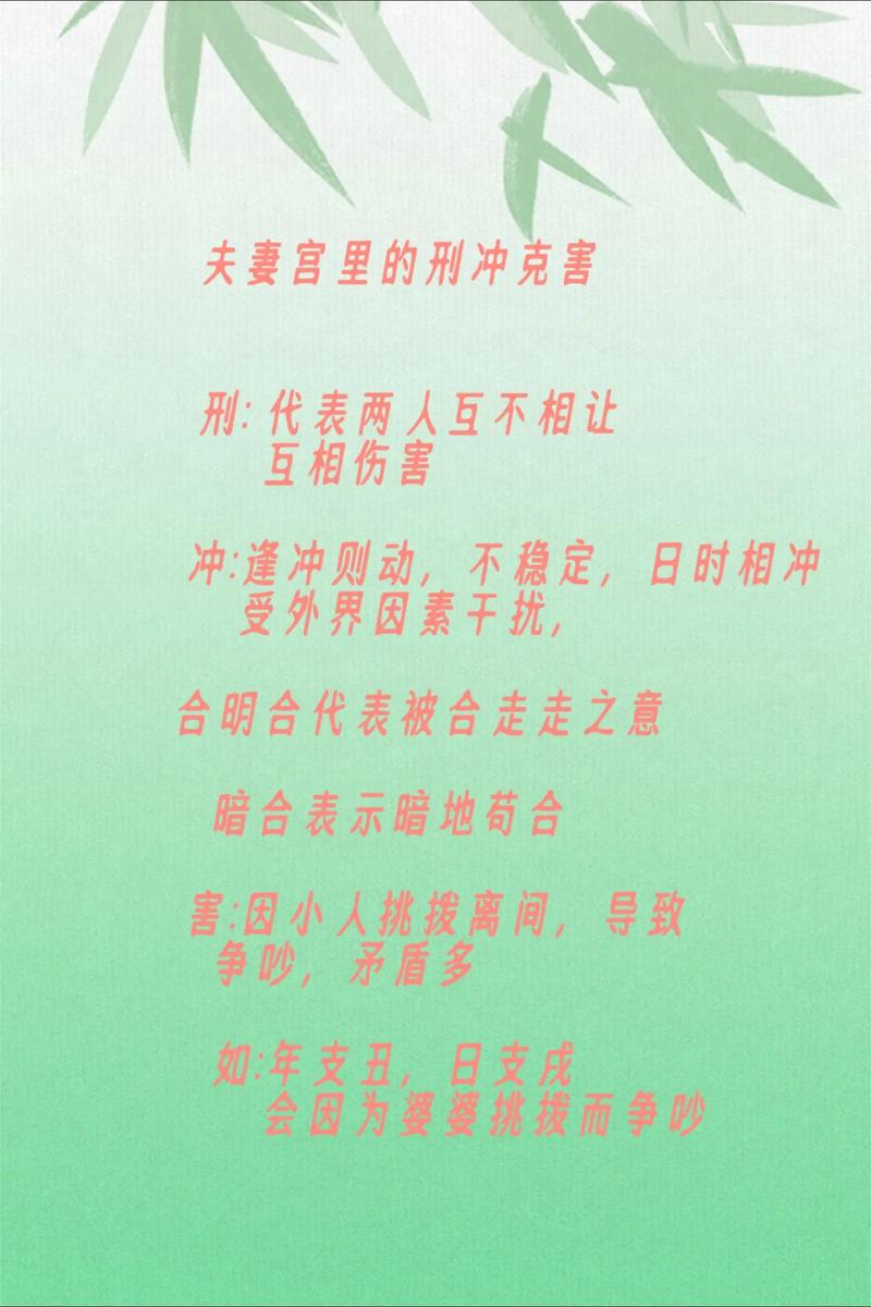 择偶时,应尽量避开与自身婚姻宫相冲的属相、例如,你的婚姻宫是“卯”,对方的年支是“酉”,这种先天的冲克会放大婚后的矛盾、应优选与日支相合、相生的属相。