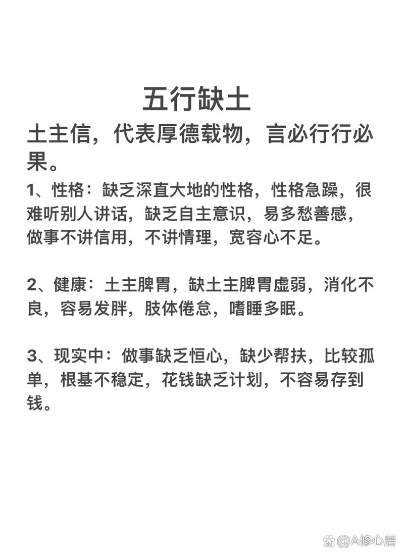 谈到事业财运,八字缺土的人往往留不住钱、土在命理中常起着“库”的作用,也就是存钱的仓库、没有土,财星就容易流失、赚到钱之后,总会有各种各样的理由把钱花出去,或者投资一些虚无缥缈的项目、对于他们来说,由于缺乏对物质的厚重感和掌控力,财富往往是过路财神、在职业选择上,如果不去刻意弥补,他们很难在房地产、基建、农业这些跟土相关的行业里做出大成就,反而容易在信息流、电子、艺术等轻资产行业里徘徊。