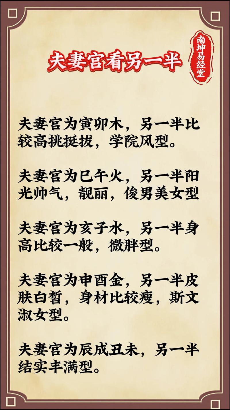 寅木代表着参天大树,向上生发的欲望极强、婚姻宫坐寅的人,其配偶往往具备一种“阳木”的特质、从外形上看,另一半通常身材较高,骨架挺拔,气质中带着一种不服输的倔强、这种木气象征着正直、仁慈,却也伴随着固执与强硬。