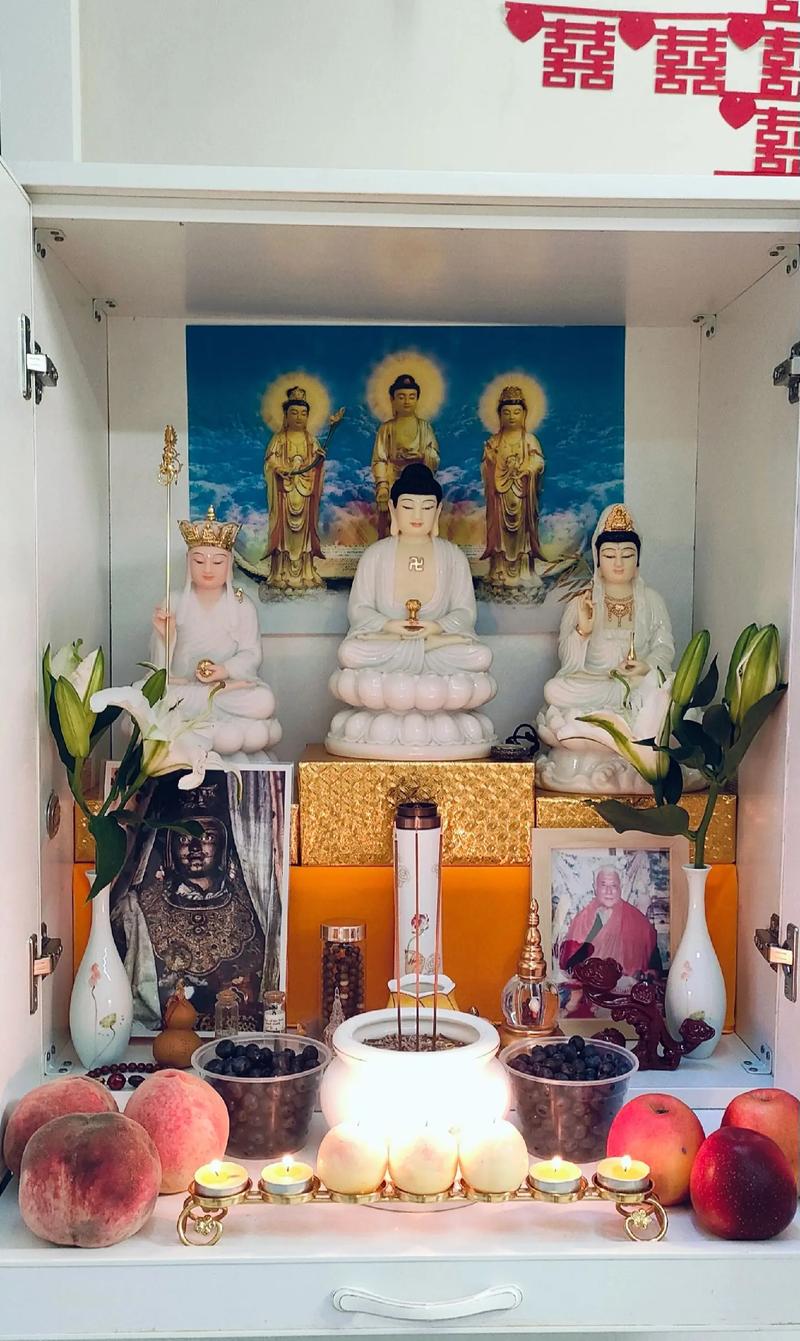 最后要提及的是方位的“结界”概念、一个完美的供奉方位,应当是一个相对独立的能量场、在佛龛的四周,可以用视觉上的界限进行划分,如地毯的边缘、灯光的照射范围。