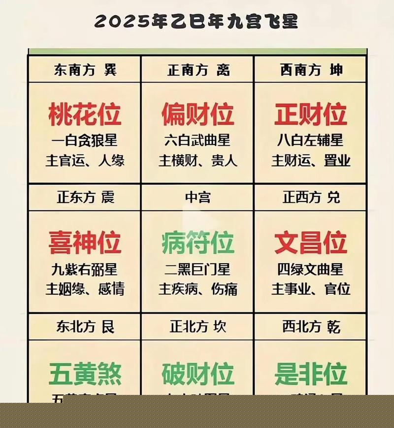 老黄历中的方位好坏,很大程度上受“九宫飞星”影响、九颗星每年在九个方位轮转,带来的能量属性截然不同。