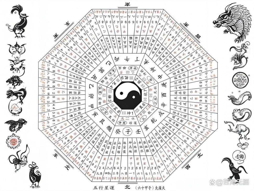 深入研究每一个方位的甲子属性,会发现五行的流转并非孤立、正北的水火激荡会牵动正南的太岁气场,正西的五黄土气又会间接影响西北的乾金能量、这是一场牵一发而动全身的磁场游戏。