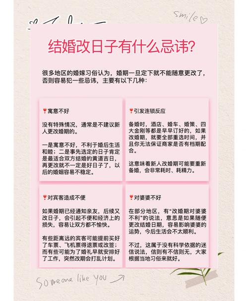 很多人担心改期不吉利,其实很大程度上是受“二婚”暗示的影响、民间俗语有云:“日子改来改去,婚姻也就容易变来变去、”这种说法虽然带有迷信色彩,但其背后揭示了一个心理逻辑:仪式感的破坏会影响当事人的信心。