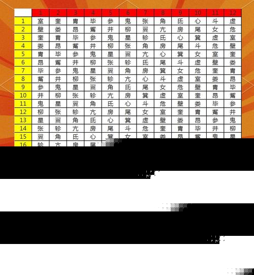 星宿,简单说就是把黄道附近的星象划分为二十八组,按东西南北四个方位排开,也就是大家常听到的东方青龙、西方白虎、南方朱雀、北方玄武、每一方各有七个星宿,这二十八个星宿轮流值日,每二十八天就是一个轮回、结婚挑日子,看的就是新婚当天的“值日星宿”到底是吉还是凶,是利于子嗣还是容易招致口舌。