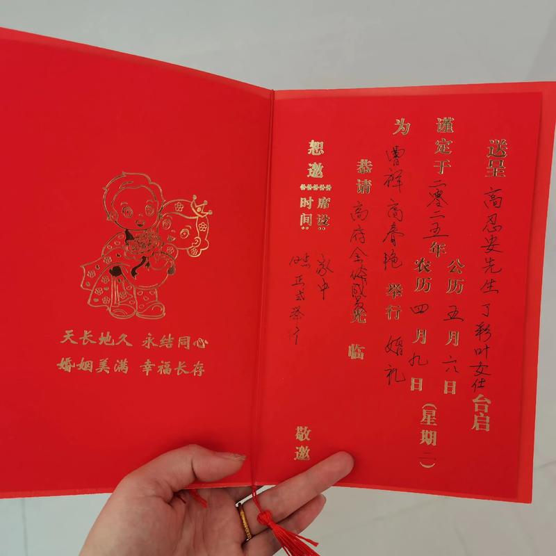 送日子的那张红纸,上面的字迹一定要工整、如果是打印的,也要选那种古风的字体、上面通常写着: