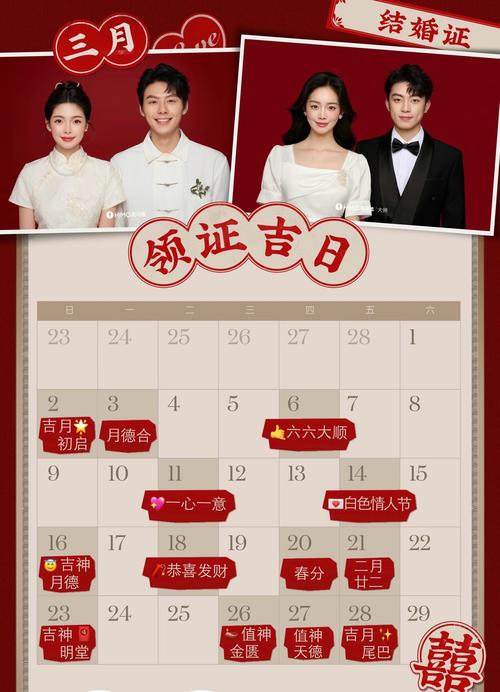 综合来看,2026年三月领证结婚是一个“上吉”的选择、避开了极端的冲克日子,利用好午未合、寅午合以及壬辰月的润局效果,新人们完全可以在这个春天开启一段高能量的婚姻旅程。