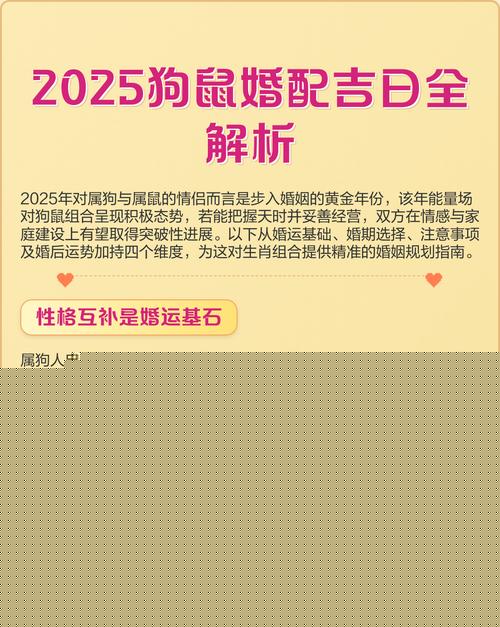 结婚吉日选定后,吉时的选择是最后的关键、对于鼠狗组合,不宜用午时(11:00-13:00),此时火气最旺,易生冲突。