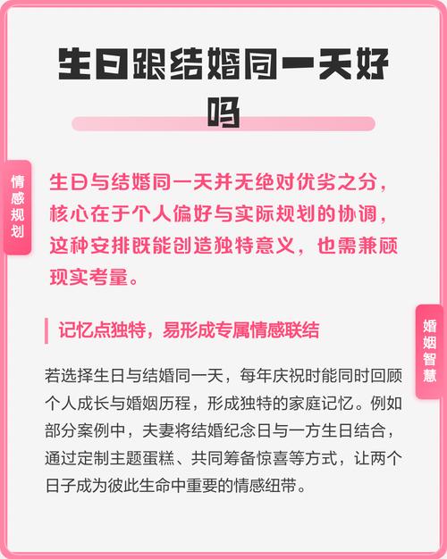 另一种观念认为,生日是祭祀先人、感谢父母恩德的日子,而婚礼则更侧重于欢庆、在某些地域文化中,这种重合被视为对长辈的不敬、尽管现代社会不再严格遵循这些陈规,但从能量聚合的角度看,过多的喜事堆积在一天,确实会导致能量的分散。