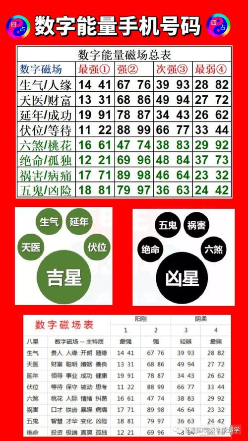 四凶磁场(绝命、五鬼、六煞、祸害):在五行俱全的配置下,并非完全不能使用凶星,关键在于制化、例如,五鬼磁场(18、81、79、97)主变动与聪明,若后面紧跟天医或延年,则能将小聪明转化为大事业、但在丙午年,79、97(火金相战)极度危险,必须避开,因为火克金在这一年最为凶烈。