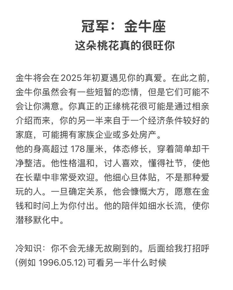 男性金牛座与女性金牛座在2026年的桃花诉求存在细微差别,因此数字的排列组合也需因人而异。