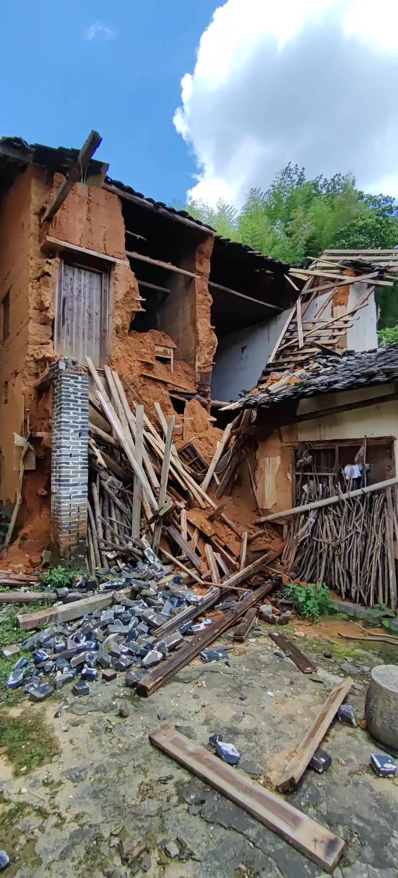 正东方(震位)代表长子与生机、震位出现裂缝,说明家族后辈运势受阻,家宅缺乏传承之气,这种倒塌预兆多与人口凋零有关。