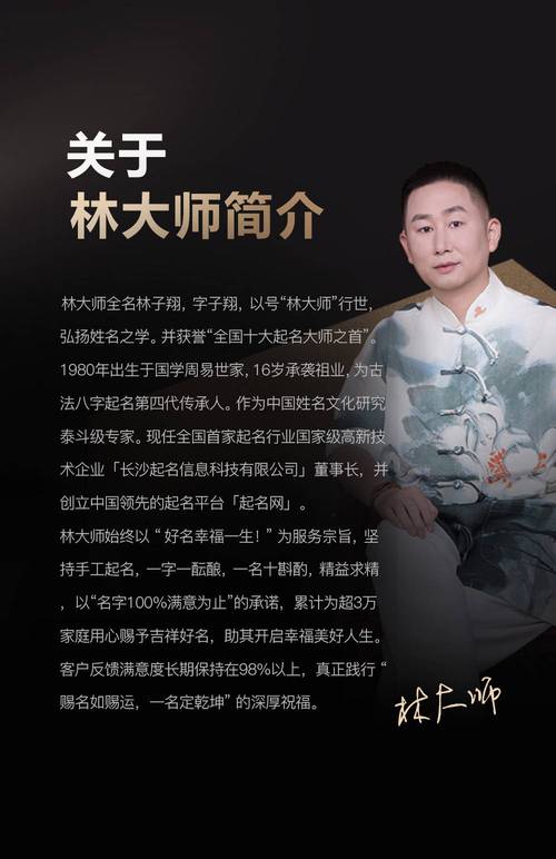 在分析林子翔起名的成功之道时,不能忽略其对“度”的把握、名字不能太俗,太俗则显不出档次;名字不能太怪,太怪则不利于社交、林子翔起名在“俗”与“雅”之间,在“常”与“变”之间,找到了那个最合适的平衡点、这不仅是学术上的造诣,更是一种人生的阅历与智慧。