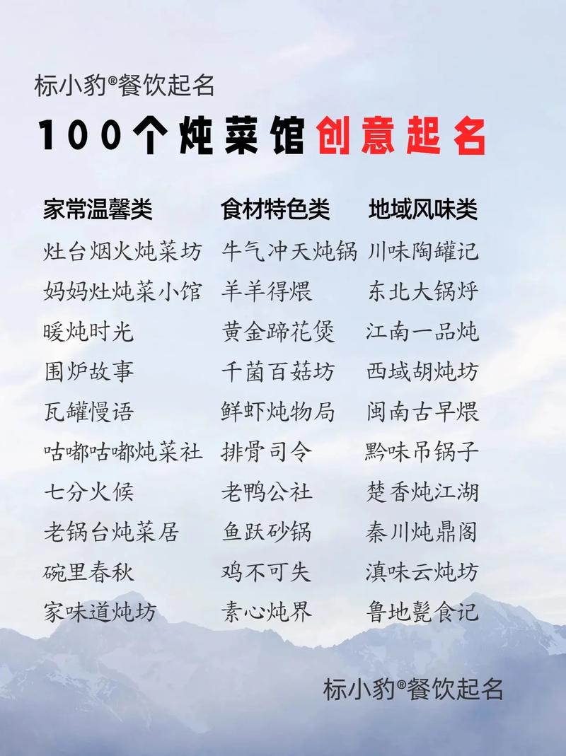 忌用“孤傲”字: 比如“冷”、“绝”、“寒”、炖品是温暖的象征,名字若太冷僻,会阻断财气入店。