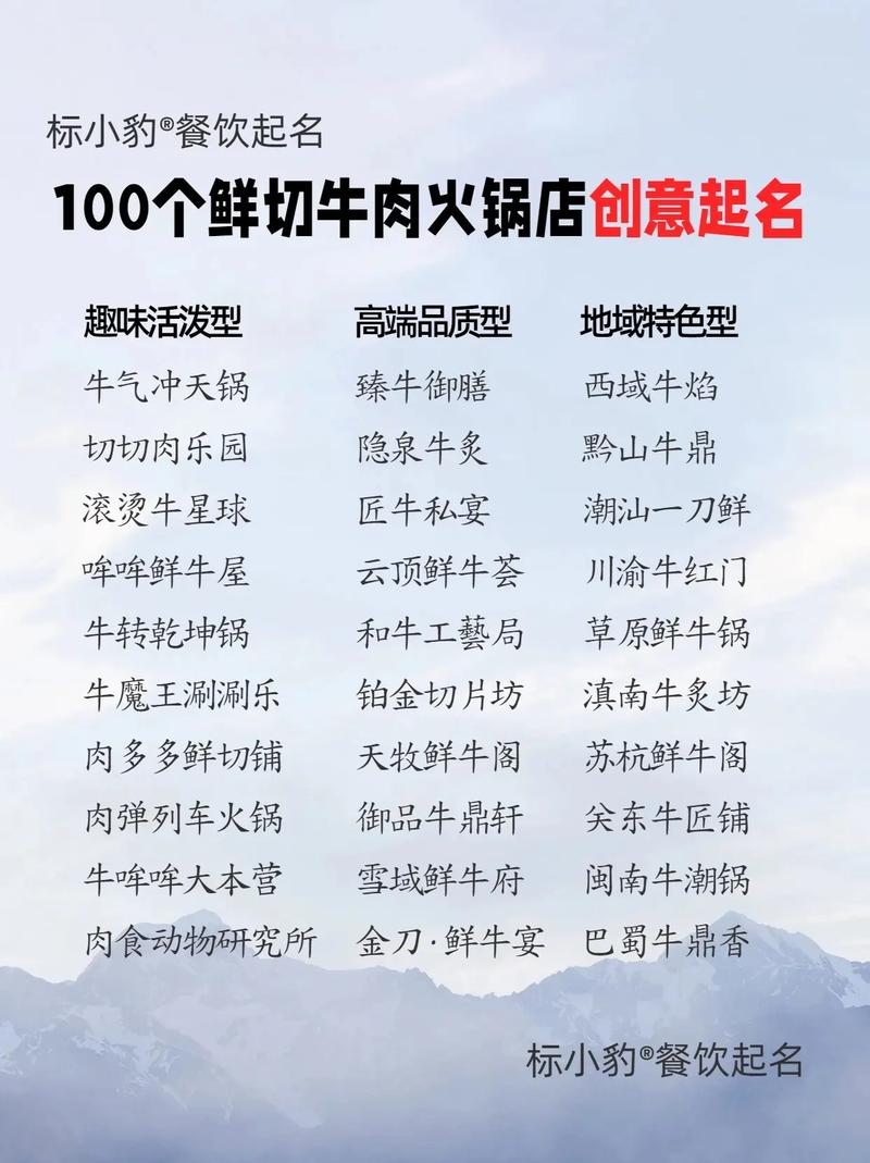 名字中若能巧妙带入“金”或“水”的意象,不仅能化解丙午流年的暴戾之气,还能起到生财聚财的效果、金代表收敛、规范、品质,水代表流动、客源、智慧、一个优秀的肥牛品牌名称,需要在视觉、听觉和玄学三个维度上达到和谐。