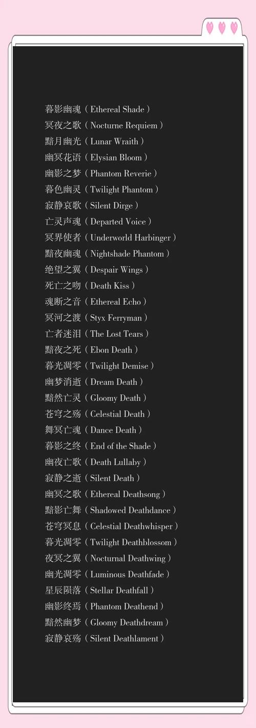 不论是为游戏角色命名,还是为文学作品中的反派定号,亦或是追求某种极致风格的个人标签,死灵起名都提供了一个独特的视角、它让我们在追求光明的不忘记黑暗的力量。