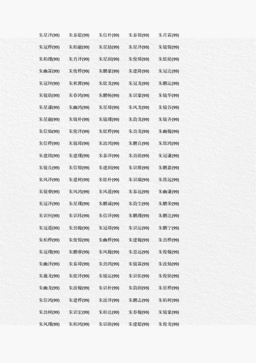 应当注重左右结构的字与上下结构的字交替使用、朱字是单一结构,如果后两个字都是左右结构,如“朱润泽”,整体线条就会显得过于舒展而散乱、若能加入一个上下结构的字,如“朱宸睿”,则会显得紧凑有序,寓意聚气生财。