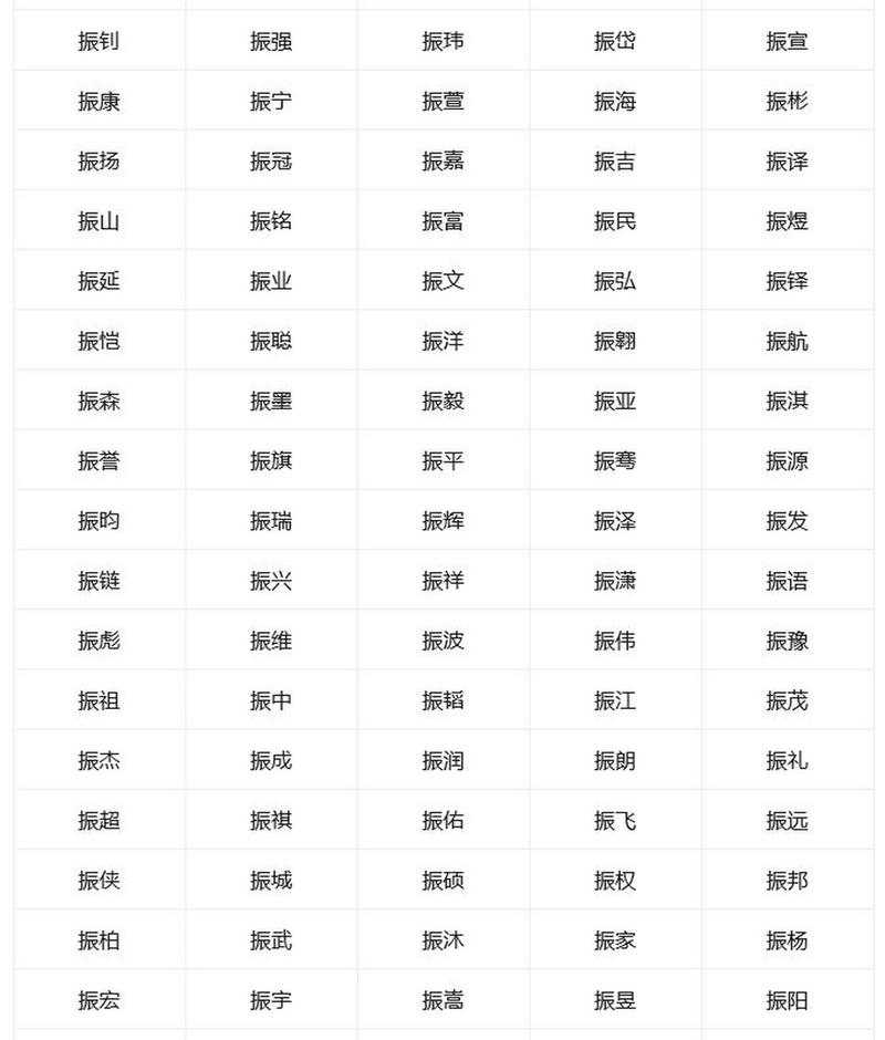1. 振弘:“弘”意为扩大、宽阔、与“振”结合,是一种向外扩张的能量,适合未来从事管理或创业。