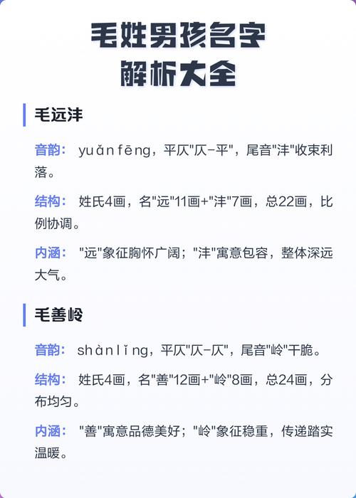 4. 字义的歧义: “毛”字本身有羽毛、毛发之意、取名时要避免产生尴尬的谐音或含义、例如“毛病”、“毛巾”等此类由于现代语境变化产生的词汇,在起名时应通过声调与语义的组合巧妙避开。