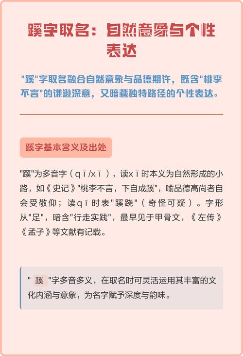 3. 含义误读:虽然“蹊跷”一词现代多指怪异,但在姓名学中,我们取其“原始路径”与“下自成蹊”的雅意、若家长对此词有心理芥蒂,应慎用,以免在心理暗示上产生负面能量。