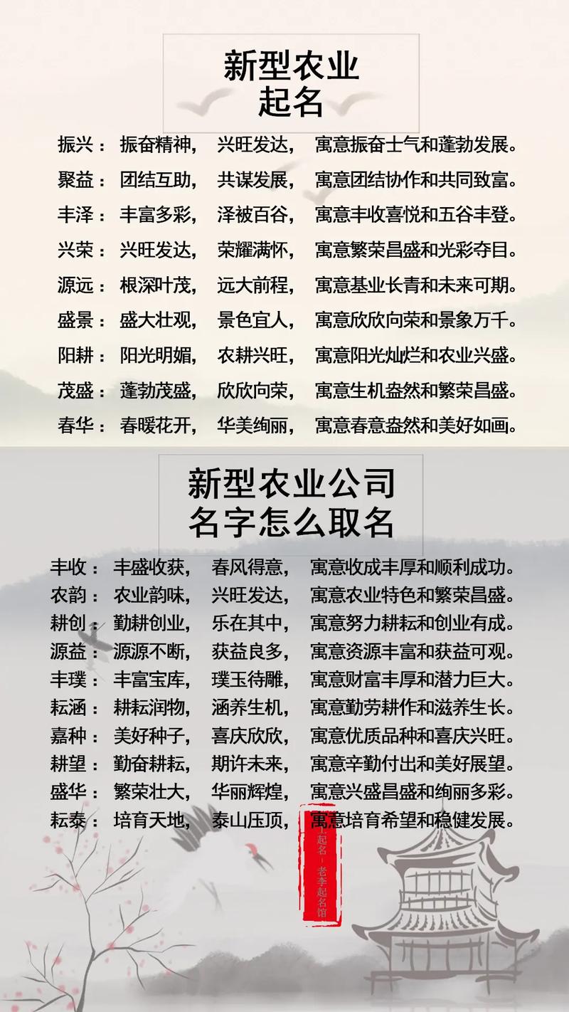 农业开发涵盖了种植、养殖、生态旅游及农产品加工等多个细分领域、根据不同的经营重心,起名的五行偏重亦有不同。