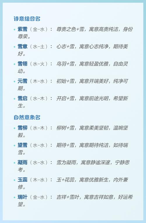精选雪姓2026年名字参考列表(按画数与五行分类)