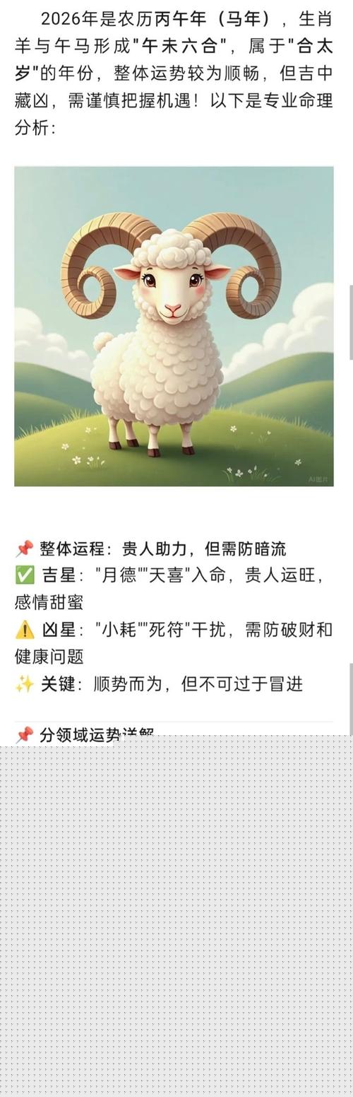 如果用几个词来概括属羊人在2026年的运势,那就是:合中有机、太阳高照、戒骄戒躁、润燥养生。