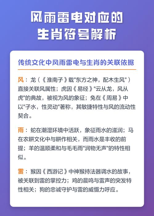 谈及风雨,世人多感其变幻莫测,既可滋养万物,亦能摧枯拉朽、在中华传统文化与命理玄学的深邃体系中,自然界的万千气象,皆与十二生肖的能量场域相互感应、那么,“风雨”这一意象,究竟指向哪位生肖神兽呢?