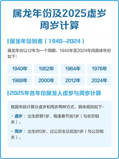 虚岁是中国传统的计龄方式,以出生时即为一岁,每过一个春节增加一岁,它体现了生命从胚胎开始的生命观、在二零二六这个火马之年,属龙人的虚岁跨度从孩提童稚到期颐之年,每个阶段的生命重心与五行冲合皆有不同。