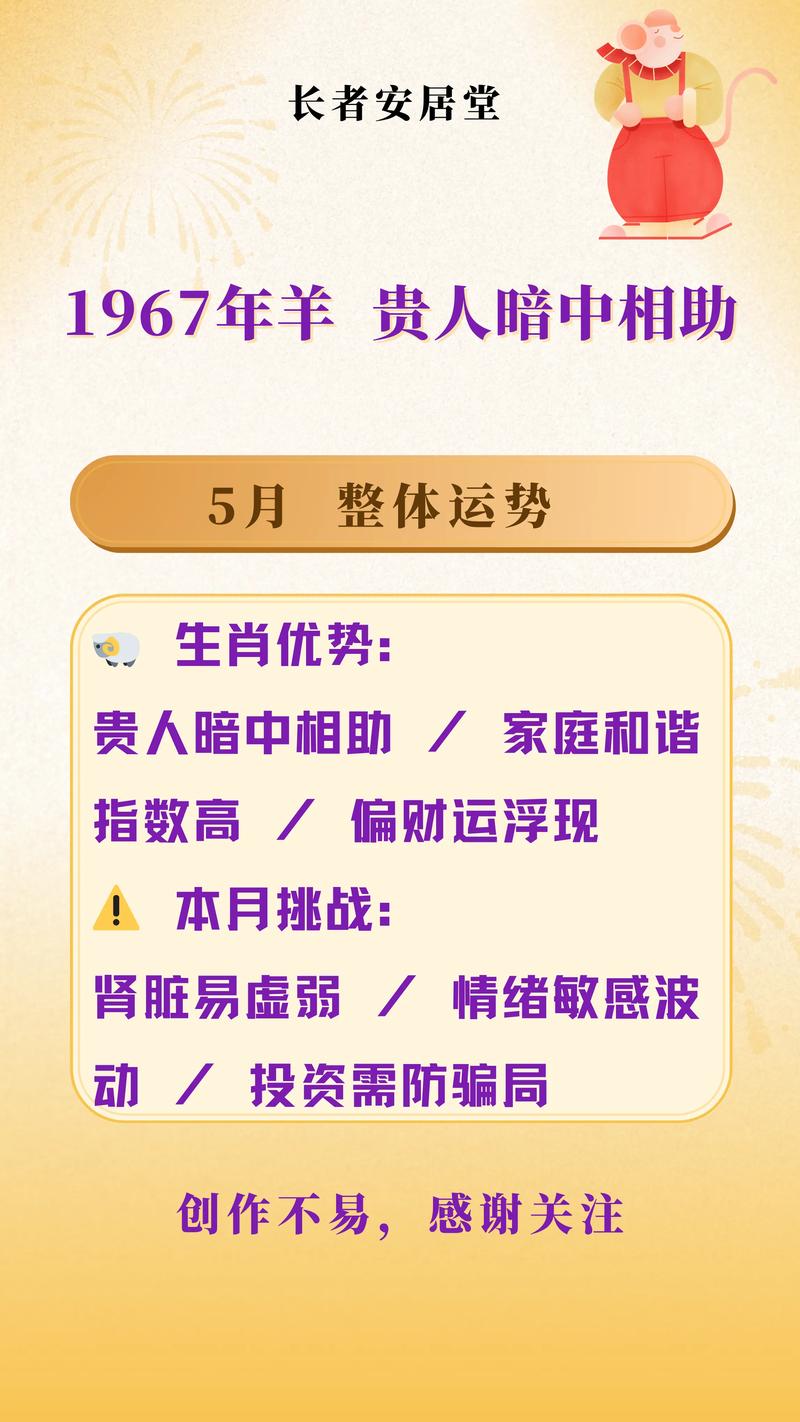 家宅内部,如果发现墙壁有渗水或霉点,务必及时处理,这在风水上象征着“漏财”与“病气”、1967年的羊在59岁这一年,气场虽强但敏感,环境的微小变化都会影响心境。