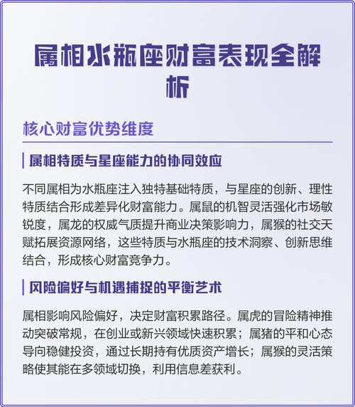 财富的获取往往伴随着认知的突破、在2026年,你会发现很多传统的赚钱逻辑不再适用、这时候,水瓶座那种“跳出框框思考”的能力就成了最昂贵的资产、你要敢于质疑现有的商业模式,敢于在别人恐惧时冷静观察,在别人疯狂时有序撤离、这种节奏感,是任何生肖或星座指南都无法完全替代的,它需要你在实战中去体悟。