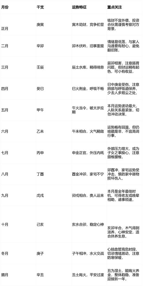 辛卯月的金木交战,象征着管理层内部的权力博弈或利益分配的不均、属兔人性格温和,但在本月,这种温和可能被视作软弱、如果你在经营生意,要注意合伙人之间可能出现的裂痕,特别是关于账目和过往决策的翻旧账、卯木代表生发,但两个卯木相叠,反而导致了精力的分散、你可能会发现自己同时被几件琐碎的事情牵扯,无法集中精力处理核心矛盾。