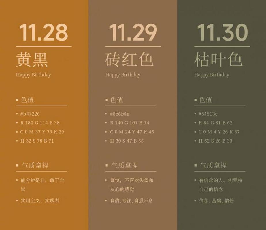属猴与属鸡之人,五行属金、金见水为泄、十一月健康色应偏向深棕色,以土生金,补足元气,防止因过度消耗导致的疲劳综合征。