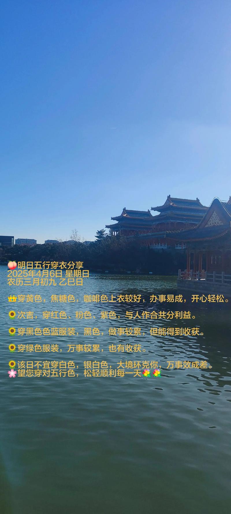 每一天的天干地支都在变动,形成不同的五行日课、为了达到极致的趋吉避凶效果,可以将手机壁纸与当日穿衣色系进行联动。