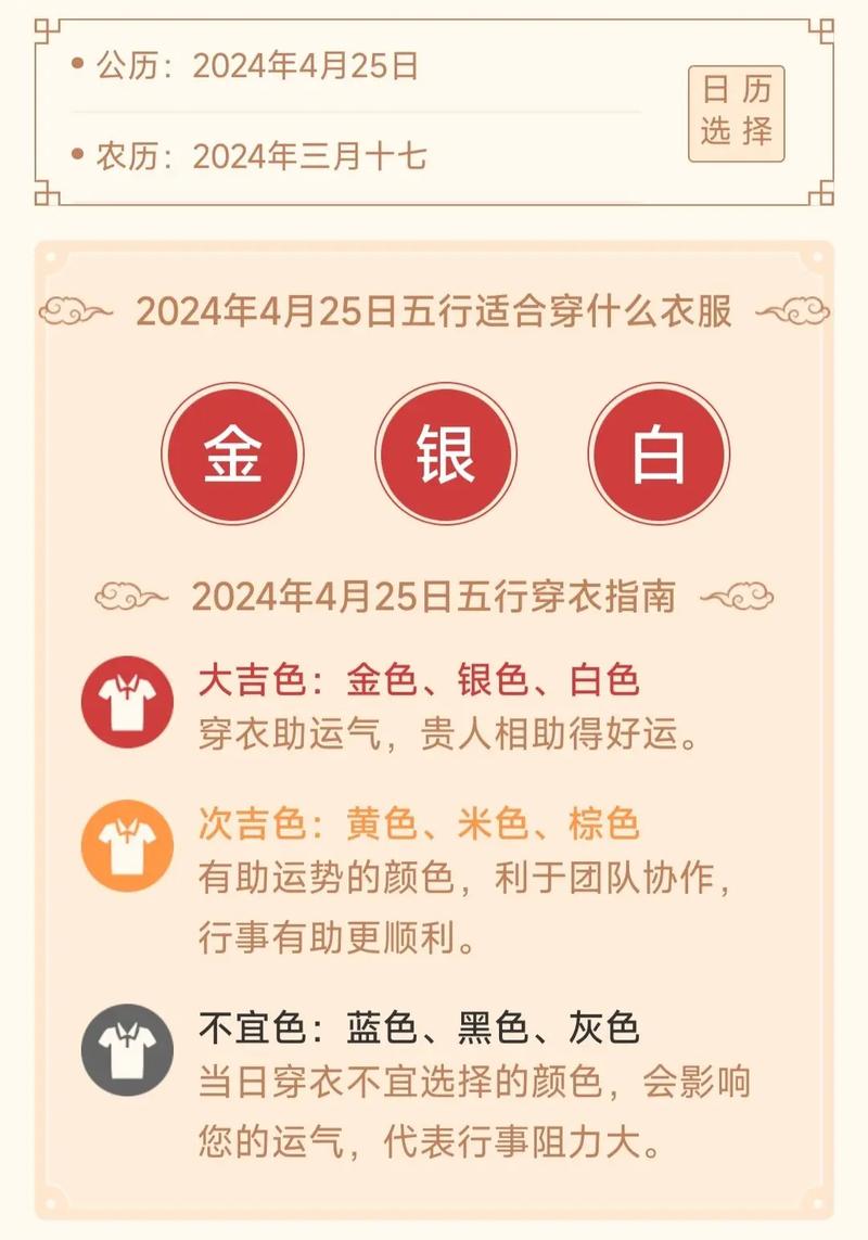 求财需要“土”的承载与“金”的变现、建议穿着咖啡色、深褐色或驼色的正装、这些颜色能让你在谈判桌上显得底气十足、配饰方面,一块钢带手表或一枚白金戒指,能加强你的决断力、切忌穿得过于轻飘,否则财运容易随风而逝。