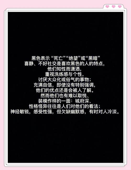 这种色彩的偏好,在未来几年内将持续深化、它将渗透进建筑、艺术、乃至我们日常的每一个思维片段中、偏爱黑色的人,正在引领一种新的精神文明——一种不再依赖外在炫耀,而是专注于内核构建的文明、在这种文明中,黑色不再是黑暗,而是光明最坚实的后盾。