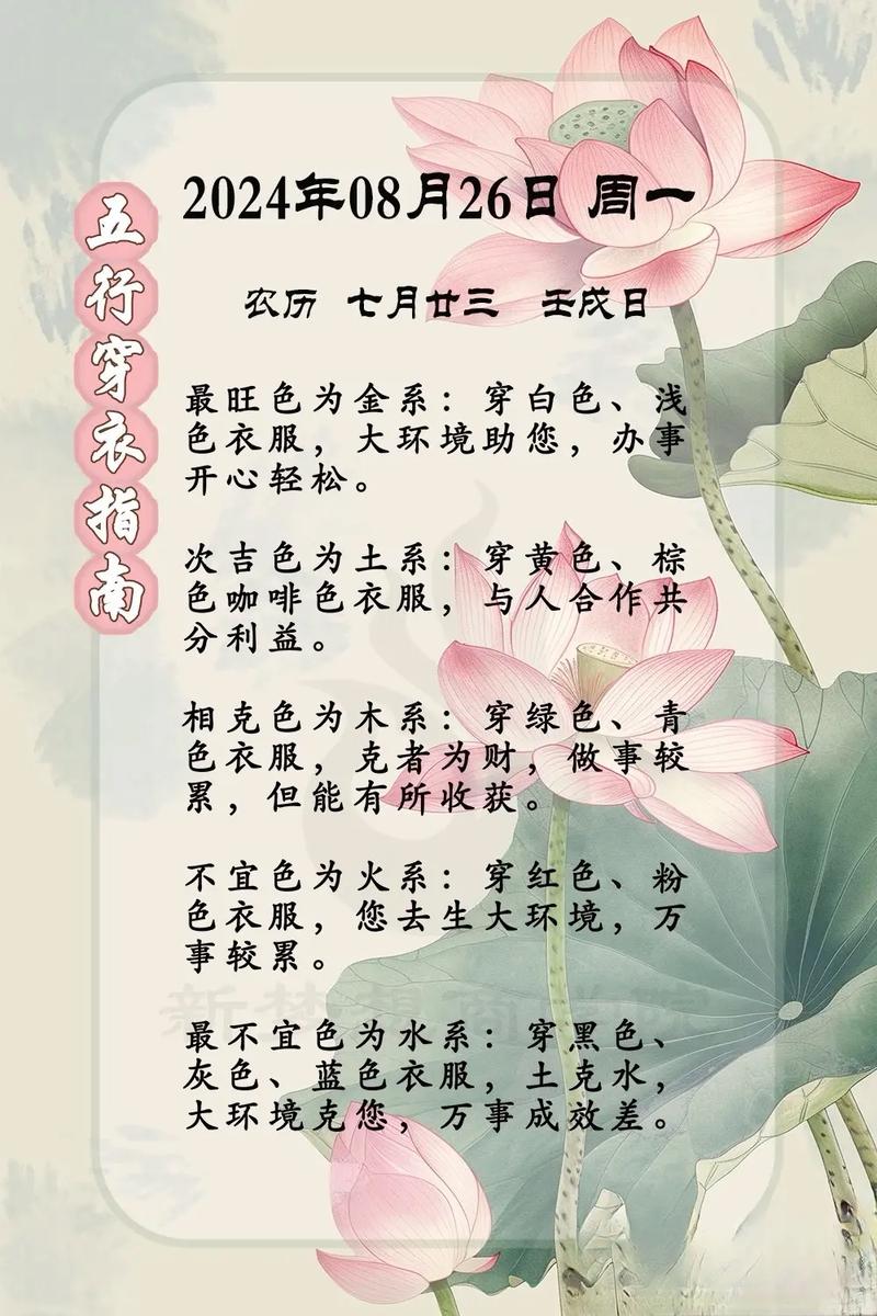 整篇文章至此,已详尽拆解了二零二六年七月中旬的穿衣玄机、从大环境的丙午火局,到每日干支的微观消长,再到材质、饰品、属相的交叉应用、这种深度与广度的结合,旨在为你提供一份全方位的气场管理手册、无需多余的修饰,这些规律本身就蕴含着改变运势的力量、在接下来的十天里,请以此为准绳,开启你的五行调和之旅。