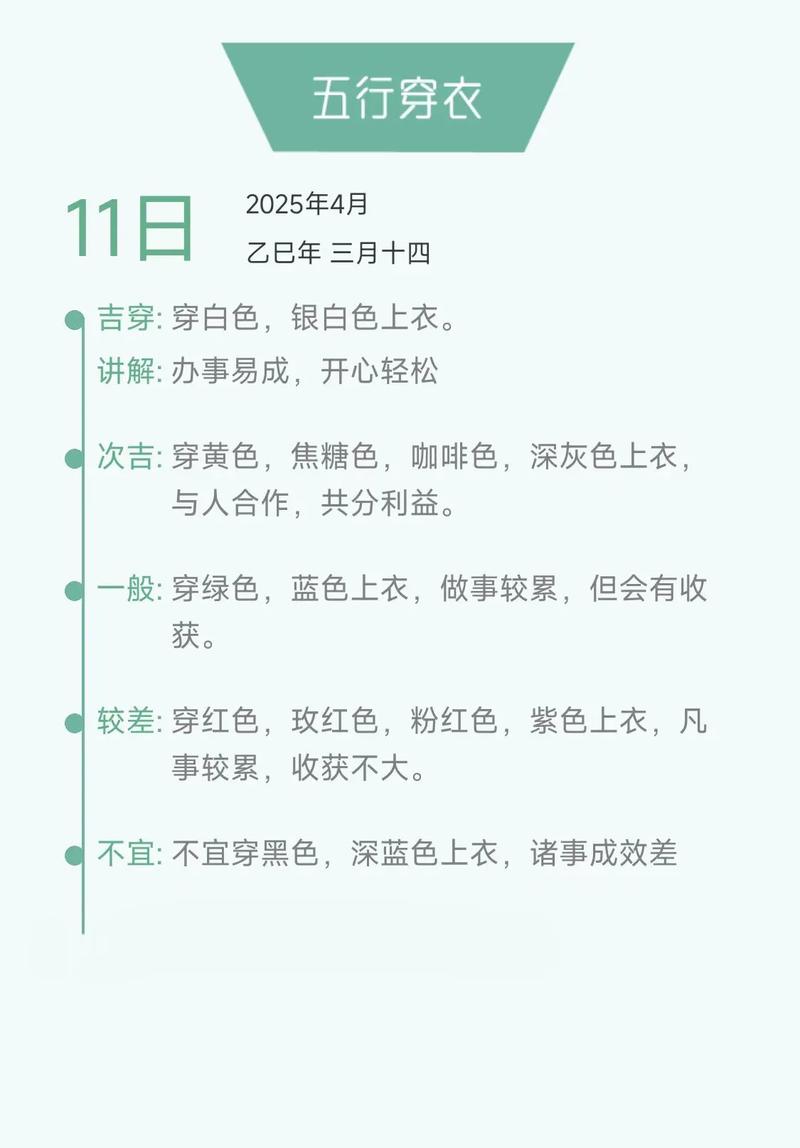 四月每日五行穿衣运势精微详解