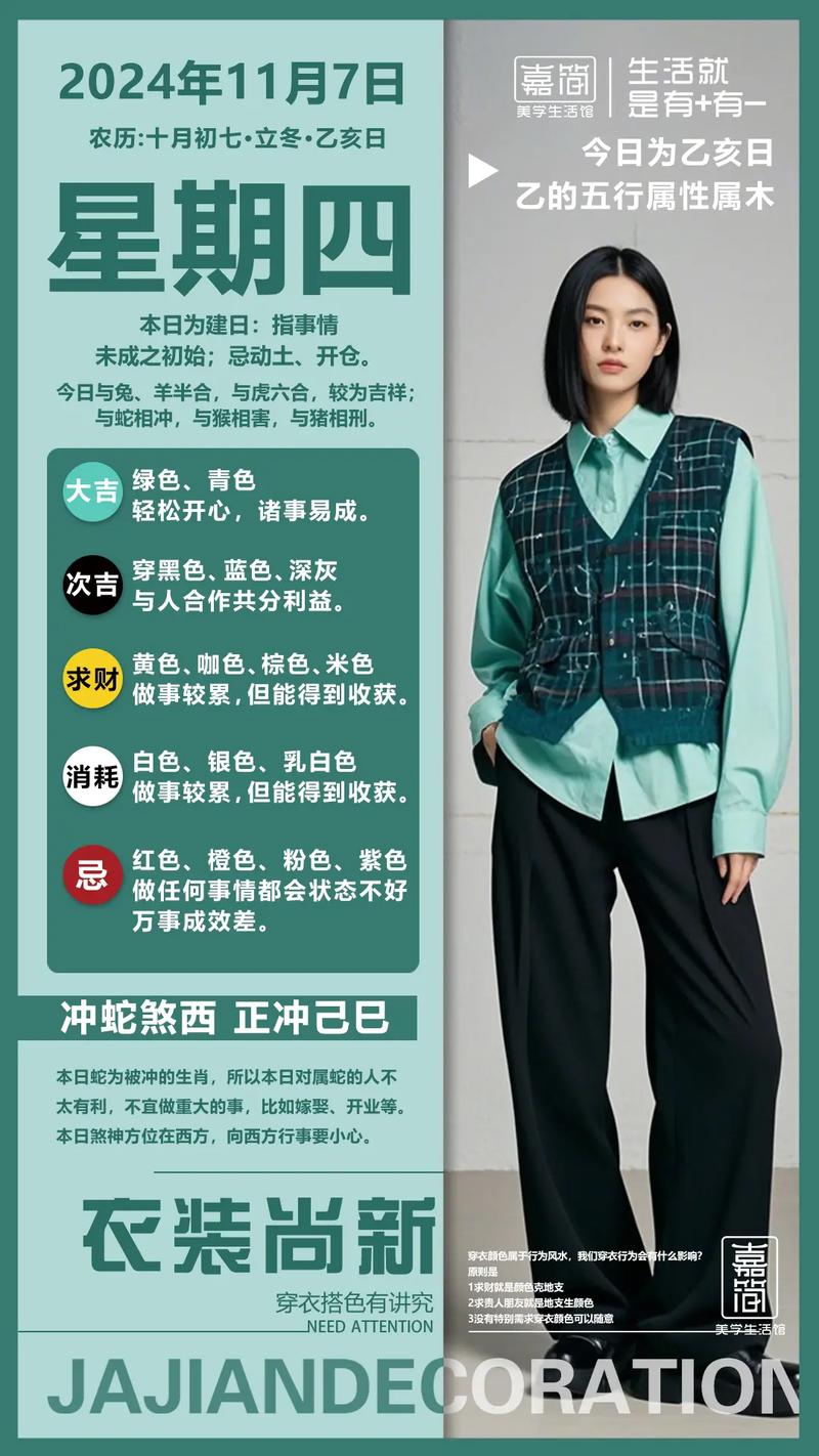 如果你是销售或处于初创阶段,周四可以尝试亮一点的果绿色、这种颜色能瞬间拉近人与人之间的距离、在丙午年的燥热氛围中,一股清新的绿色如同甘霖,能让人一眼记住你、它代表着生机与不折不扣的执行力。