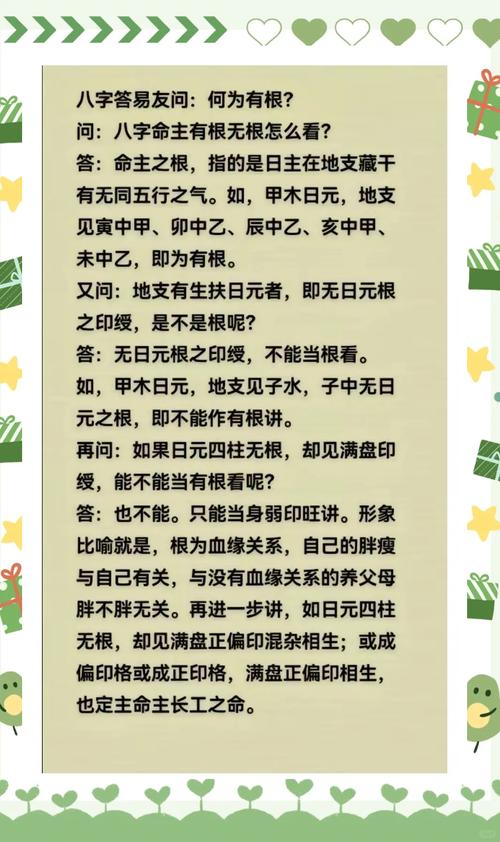 年干代表祖上与早年,年干无根的人,往往早年离乡,或者得不到祖荫、月干代表父母与事业,月干无根的人,职场波动大,很难在一个行业深耕、时干代表子女与晚年,时干无根的人,晚年可能生活环境变动频繁,或者与子女缘分较薄。