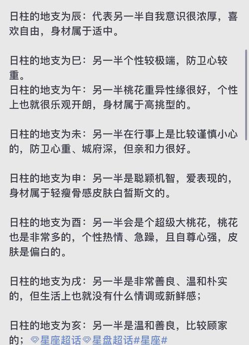 如果日支是寅、申、巳、亥,这叫“四生”位、这四个字代表着变动与活力、这意味着另一半是个闲不住的人,社交能力强,甚至可能经常需要出差或外勤、寅木代表对方有上进心,野心不小,性格直爽;申金代表对方反应极快,为人圆滑且好动;巳火代表对方心思深沉,观察力敏锐,甚至带有一点神秘感;亥水代表对方性格随和,包容心强,但有时候会显得缺乏定性。