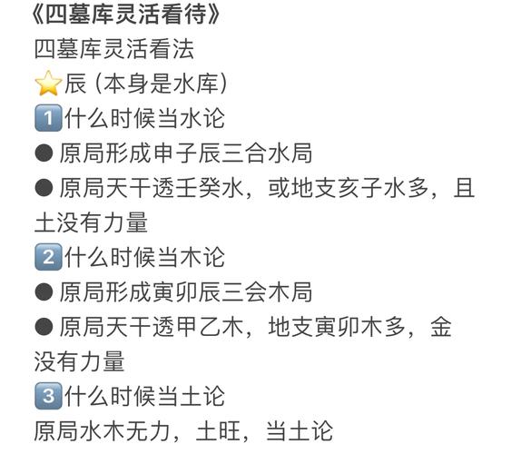 这种“发”是有前提的、如果墓库中的五行是命局的忌神,冲开墓库就等于是打开了潘多拉的魔盒,祸事会接踵而至、例如,一个水为忌神的命局,辰土本将水气收拢,若是遇到戌土来冲,辰中癸水倾巢而出,命主可能会面临名誉受损、官非或财务危机。