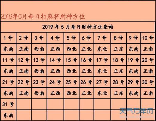麻将桌上的财神方位并非固定不变,它是根据当天的天干来决定的、推算方法遵循“甲乙东北是财神,丙丁向在西南寻,戊己正北坐方位,庚辛正东去求金,壬癸原来正南坐”的古训。