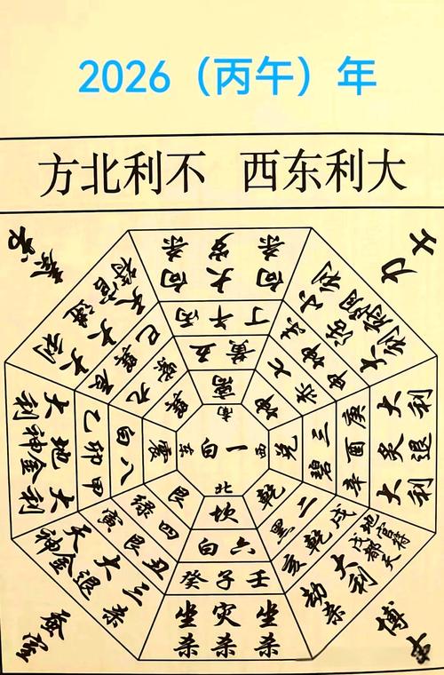 1. 太岁方: 正南方、2026年太岁在午,此方位即便有吉星飞临,也不可轻易钻墙、破土、若必须装修,需从其他方位开始动工。