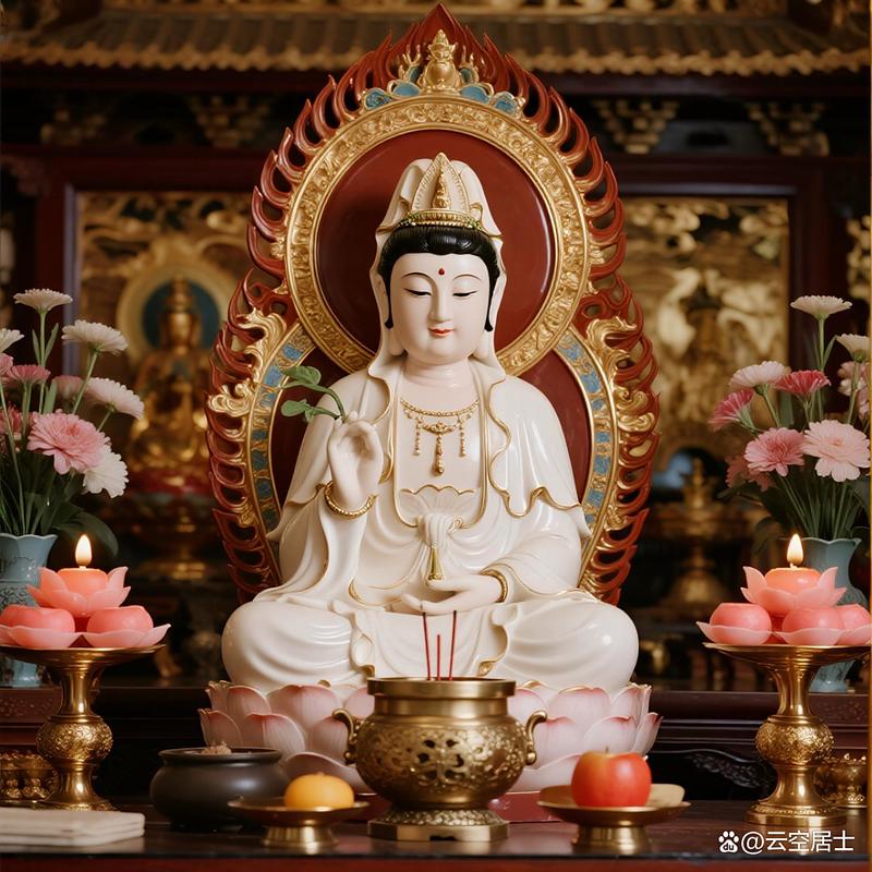 现代城市公寓的空间有限,很多时候无法达到完美的风水方位、遇到这种情况,我们要遵循“择优而立”的原则、如果客厅没有合适的方位,可以将佛龛设在独立的书房、书房气场安静,符合菩萨的清净本位。