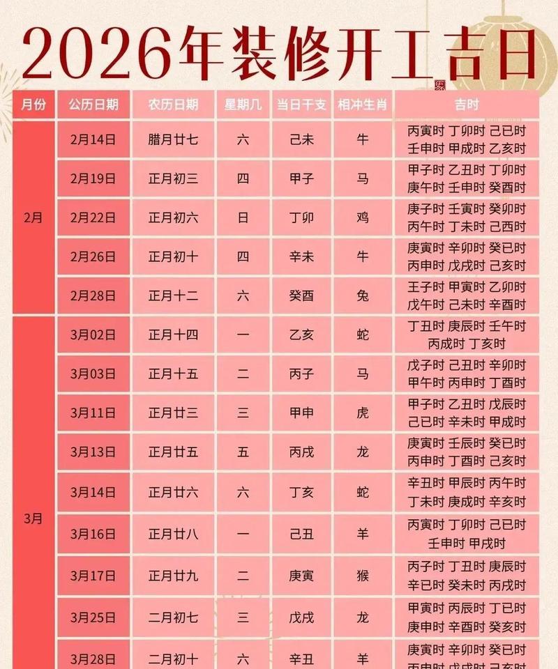 2026年3月装修动工吉日深度解析